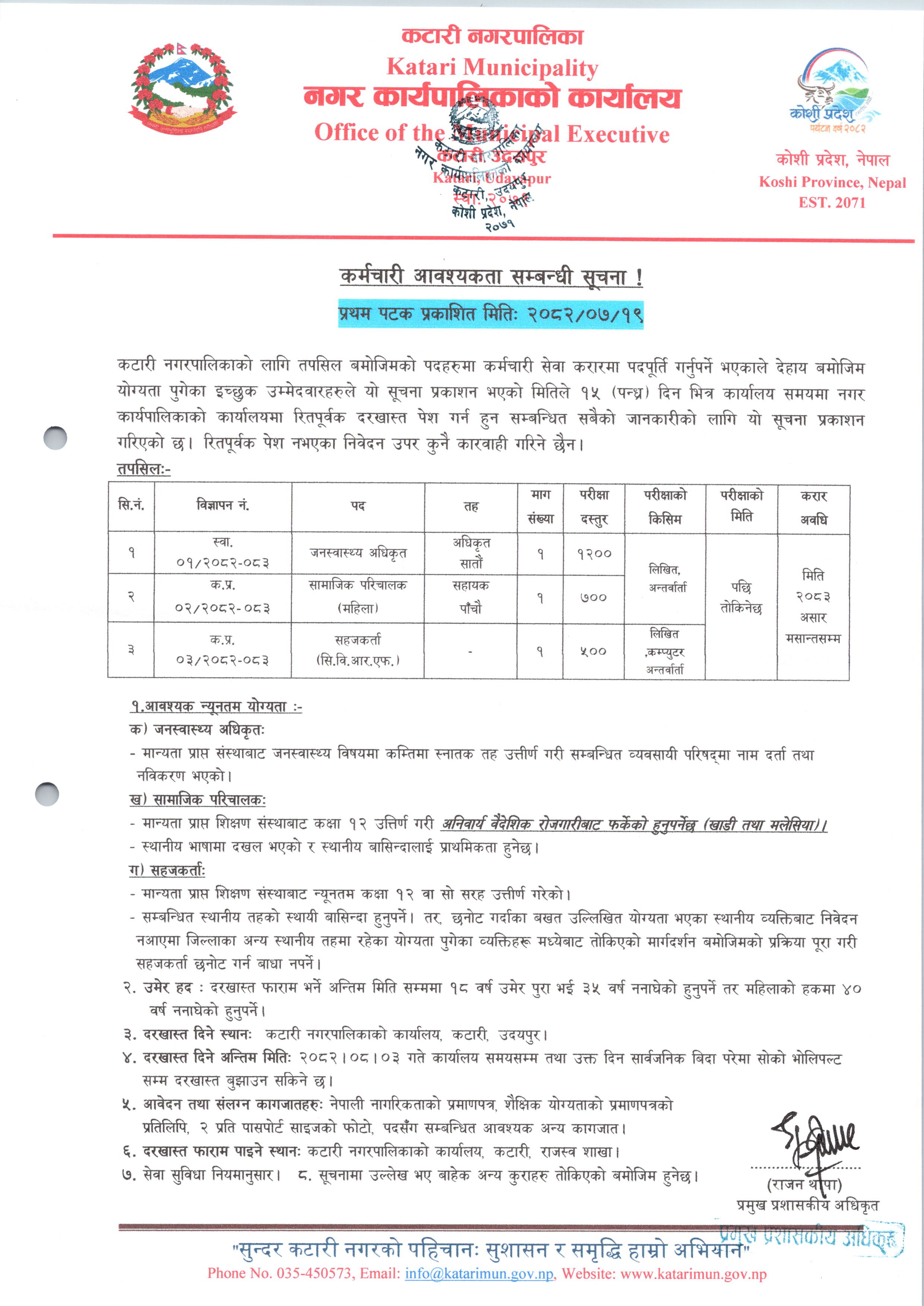 कटारी नगरपालिका - दर रेट २०७६/०७७