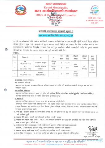 » कर्मचारी आवश्यकता सम्बन्धी सूचना l