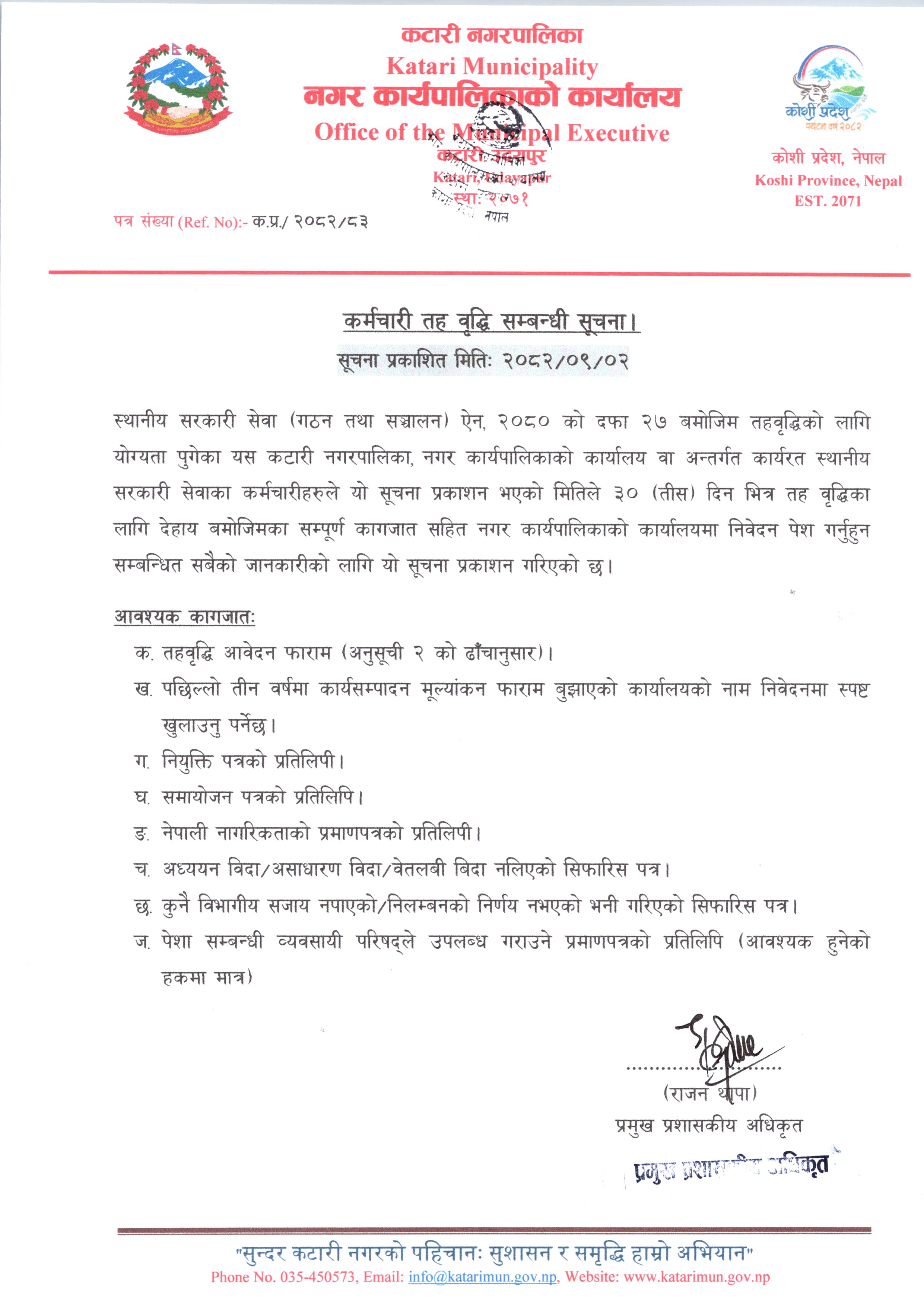 कर्मचारी तह वृद्धि सम्बन्धी सूचना ।