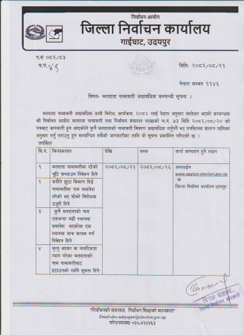 » मतदाता नामावली अध्यावधिक सम्बन्धी सूचना ।