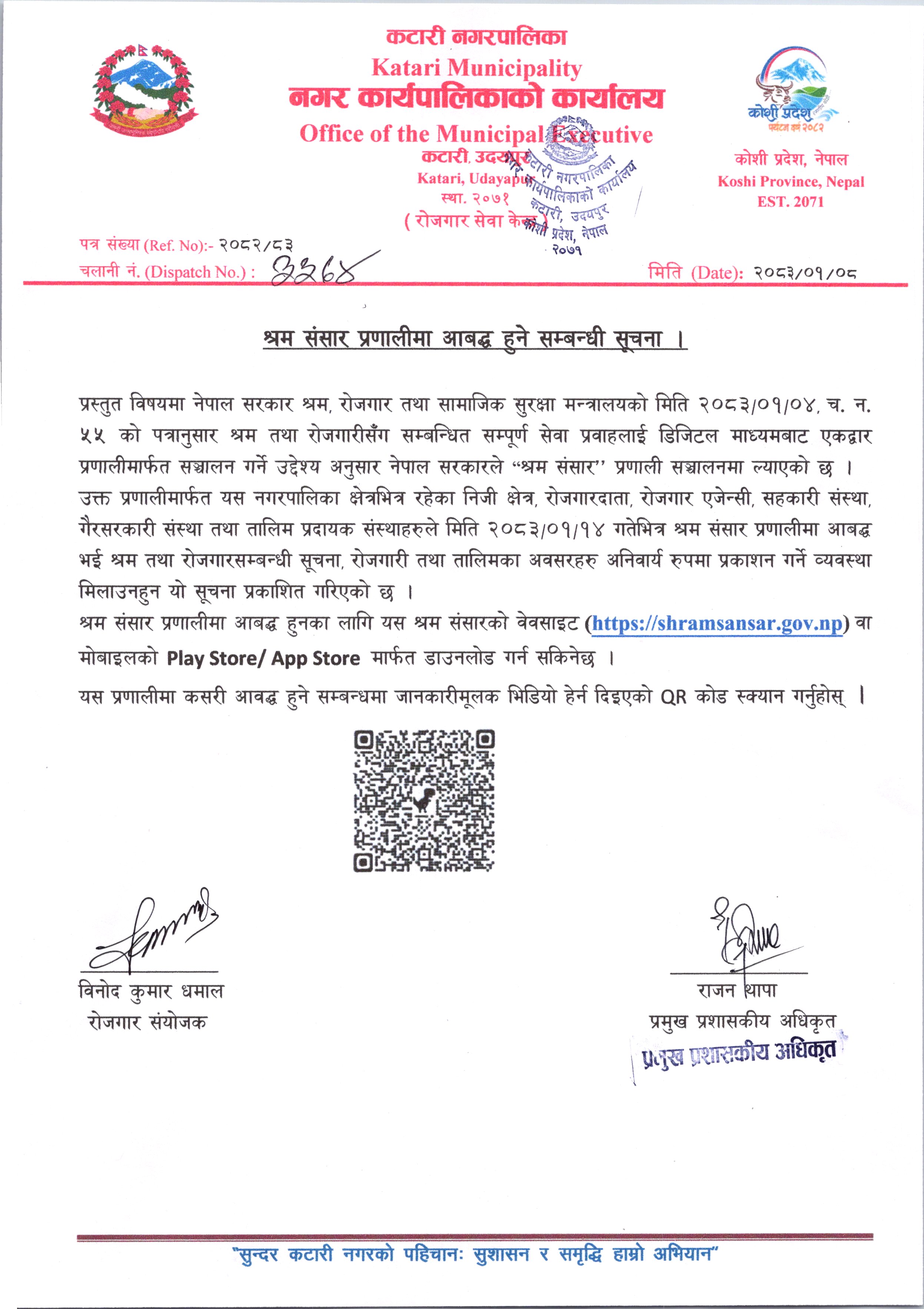 » श्रम संसार प्रणालीमा आवद्ध हुने सम्बन्धी सूचना l