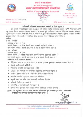 तालिमको लागि प्रशिक्षक आवश्यकता सम्बन्धी सूचना ।
