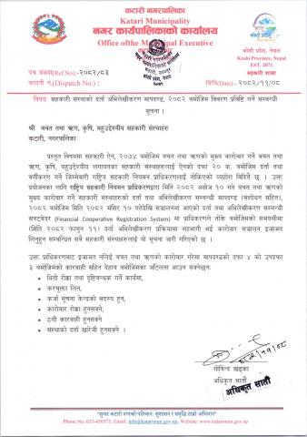 सहकारी संस्थाहरूको विवरण प्रविष्टि गर्ने सम्बन्धी सूचना ।